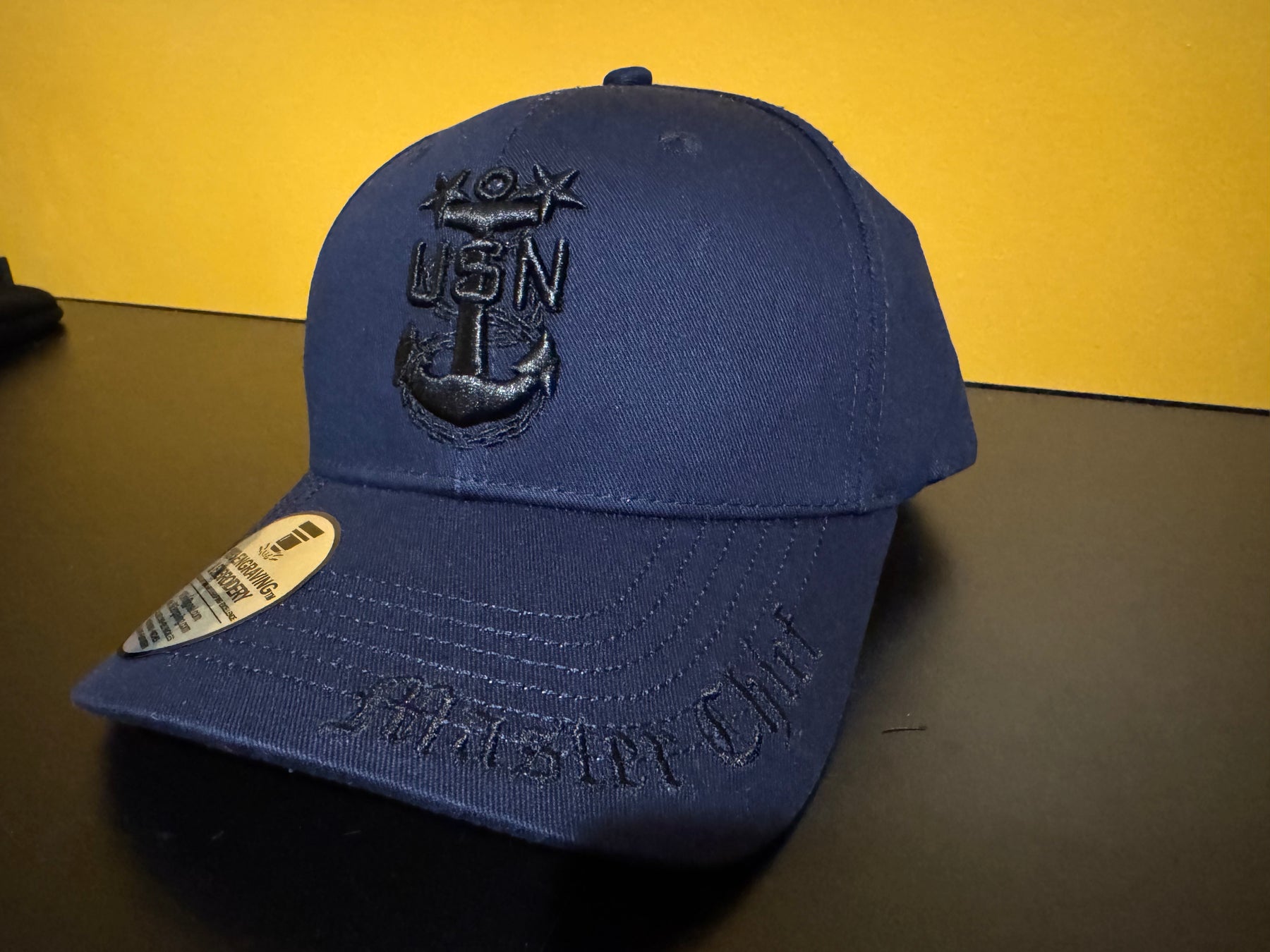 This adjustable velcro-back premium ball cap features the US Navy Master Chief Petty Officer anchor in puff embroidery as well as an embroidered bill.